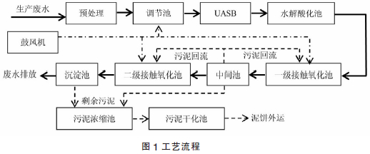 (1)“預(yù)處理-UASB-二級接觸氧化”工藝能有效處理高濃度,水量、水質(zhì)變化較大的醫(yī)藥中間體生產(chǎn)廢水,CODCr,BOD5,NH3-N,SS 等去除效果穩(wěn)定,達(dá)標(biāo)率高。