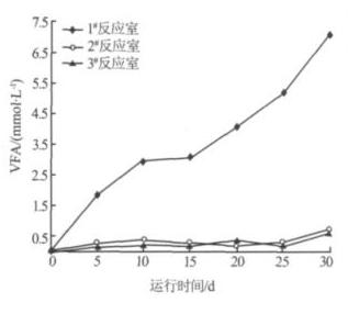 圖 5 各反應(yīng)室 VFA 隨運(yùn)行時(shí)間的變化