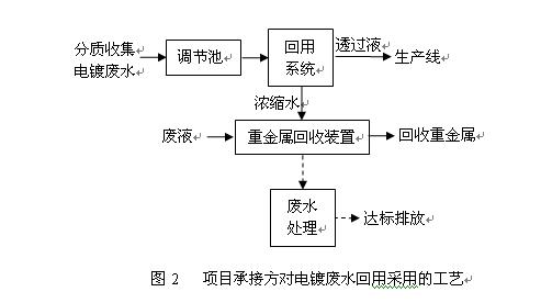 2.1項目承接方對電鍍廢水回用采用的工藝(如圖2)與目前較多電鍍企業(yè)廢水的回用工藝(如圖1)簡單比較: