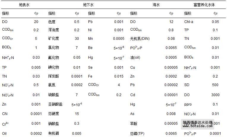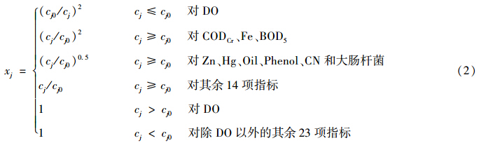 式中,x′j 為水質(zhì)指標j的規(guī)范值.