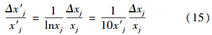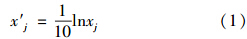 式中,x′j 為指標j的規(guī)范值;xj為指標j的變換值,對4類水體和空氣指標j設(shè)定的變換式分別如式(2)~式(7)所示.