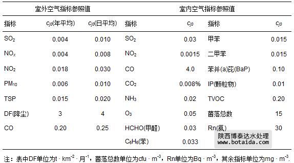 式中,x′j 為室內(nèi)、外空氣指標j的規(guī)范值.