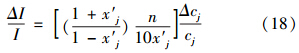 分別表示引力指數(shù)的相對誤差和指標測值的相對誤差.式(19)可寫為: