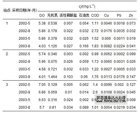 表 7 珠江口2002—2003年3個站點水質(zhì)指標監(jiān)測數(shù)據(jù)cj