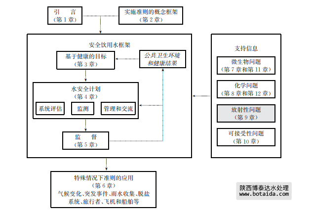 對于健康風(fēng)險評價來說,本準(zhǔn)則對天然放射性同位素和人工放射性同位素同樣適用。但 對于風(fēng)險管理,二者還是有些差別,因?yàn)閺睦碚撋希斯し派湫酝凰卦谶M(jìn)入供水系統(tǒng)之前是 可控的。相反,對于天然放射性同位素來說,在消費(fèi)者使用前,可在任何地點(diǎn)或多個地點(diǎn)都有 進(jìn)入供水系統(tǒng)的潛在可能性。因此,在飲用水中天然放射性同位素往往較難實(shí)施控制。