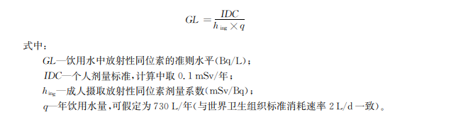 飲用水中放射性同位素的準則水平由下式計算確定:
