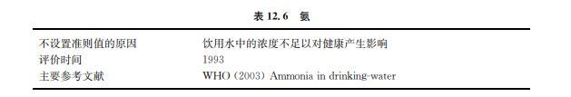 氨包括非離子化(NH3)和離子化(NH+ 4 )兩種形態(tài)。環(huán)境中的氨來自新陳代謝、農(nóng)業(yè)和 工業(yè)的加工處理過程和氯胺消毒過程。在地下水和地表水中氨的背景濃度常低于 0.2mg/L。不過,厭氧條件下的地下水含有的氨可高達3mg/L。密集飼養(yǎng)動物會大幅度增 加地表水中的氨。氨的污染也可能來自水泥灰漿管道的襯里析出。水中的氨是水可能受細 菌、污水和動物排泄物污染的指示指標(biāo)(見表12.6)。