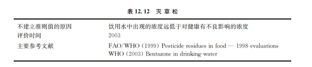對(duì)大鼠和小鼠的長期研究沒有顯示潛在的致癌性。體內(nèi)和體外多項(xiàng)的試驗(yàn)表明滅草 松不是遺傳毒物。JMPR依據(jù)小鼠兩年喂飼試驗(yàn)的血液病學(xué)效應(yīng)將滅草松的ADI值設(shè)置 為0~0.1mg/kgbw,由此推導(dǎo)出以健康為基準(zhǔn)的準(zhǔn)則值為300μg/L。但由于滅草松存 在的濃度水平遠(yuǎn)低于產(chǎn)生健康風(fēng)險(xiǎn)的水平,因此沒有必要考慮建立基于健康的滅草松準(zhǔn) 則值。