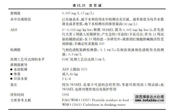克百威在急性經口染毒后毒性很高。短期和長期毒性研究顯示克百威中毒的全身反應是膽堿酶抑制。在生殖毒性研究中沒有致畸性的證據。根據研究資料,克百威似乎不具致 癌性和遺傳毒性。