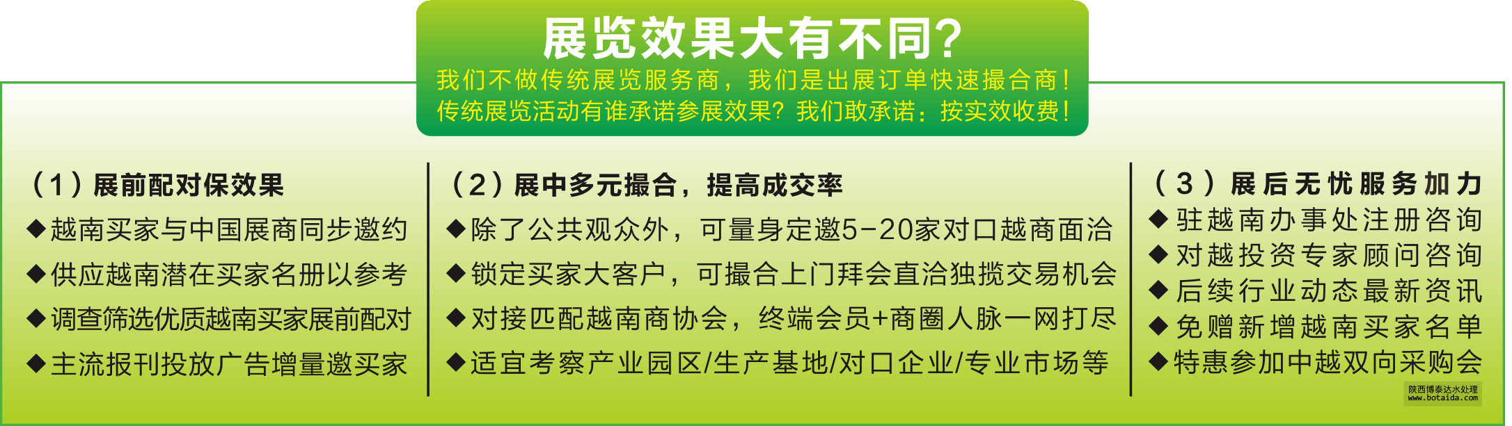 3 權(quán)威性:越南國家級節(jié)能環(huán)保產(chǎn)業(yè)重頭戲、越南生態(tài)可持續(xù)發(fā)展戰(zhàn)略展,由越南政府主導(dǎo);