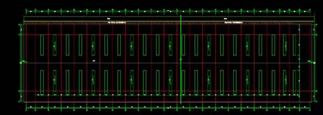 舊熟料堆棚長約 165.5,寬 45 米,高 12 米的料倉。沿兩邊立柱上方跨梁噴設(shè),跨梁共計數(shù)量 24 個、鋪設(shè) 23 個,共計長度約 1035 米。