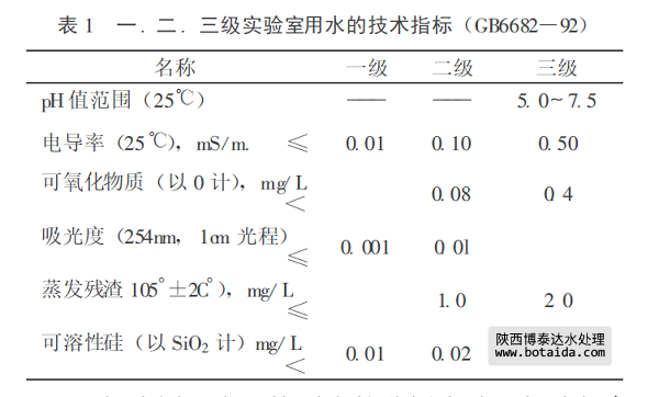 國家標準規(guī)定有分析實驗室用水的技術指標。分析實驗室用水的技術指標見下表,