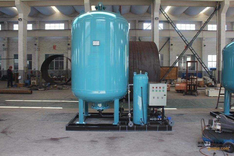 自動定壓補水裝置配置:含有真空脫氣罐、水泵、PLC控制柜、設備底架、壓力感應裝置、管道、閥門等設備。
