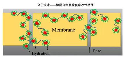 通過分子設(shè)計,采用雙荷負(fù)電(兩親)嵌段共聚物自組裝形成的豐富而有序的拓?fù)浣Y(jié)構(gòu),對常規(guī)UF膜進(jìn)行協(xié)同自組裝荷負(fù)電改性,最終制得高度有序的不對稱均孔荷負(fù)電功能超濾膜。